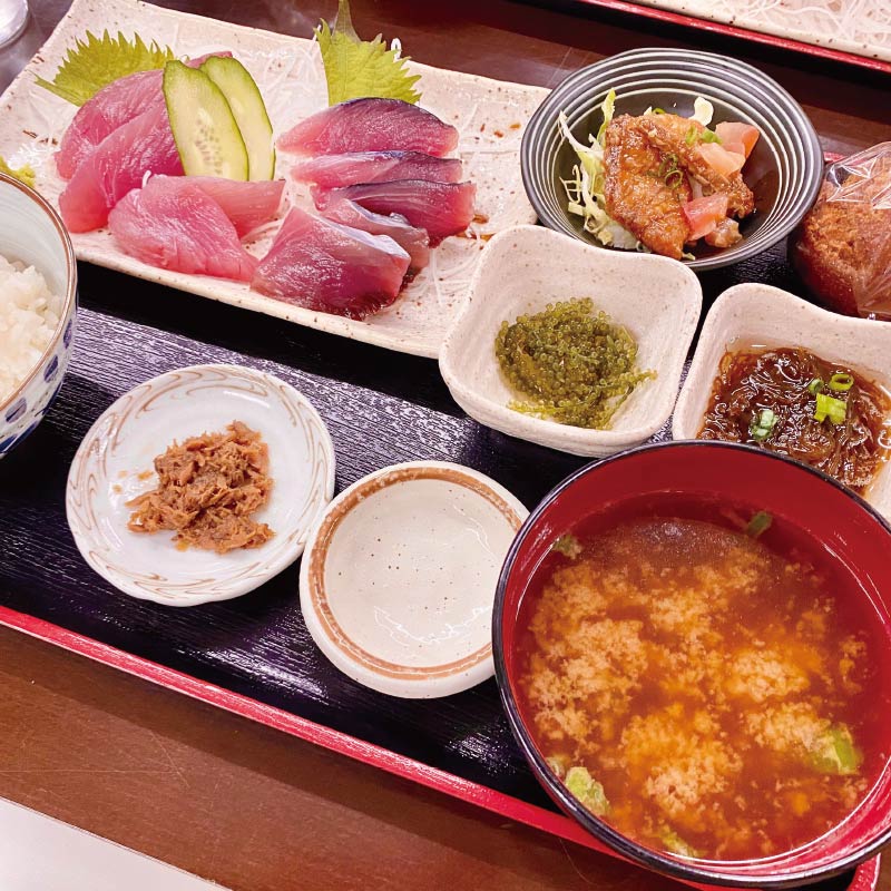 佐良浜港で新鮮な刺身定食※その日の漁によって変動あり