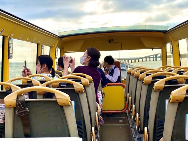 社内からは視線を遮る欄干どころか、橋自体が見えないので、海の上を飛んでるかのような浮遊感と開放感。