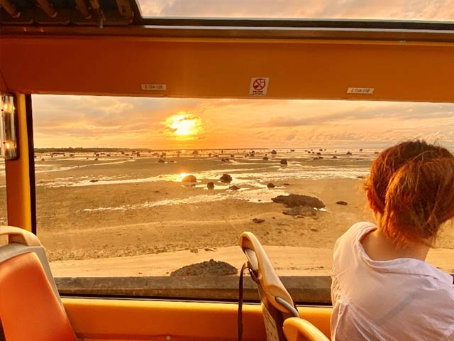 西の空だけでなく、空の上も夕日で染まるのは、オープントップならではですね。