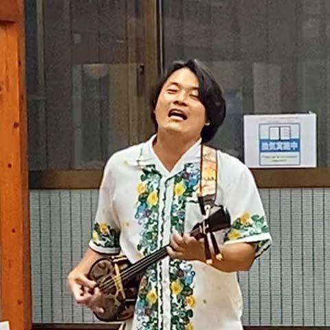 その代わり、代替プログラムの半場吉朗(通称:ヨシ)によるプライベート三線ショーを楽しんでいただきました。